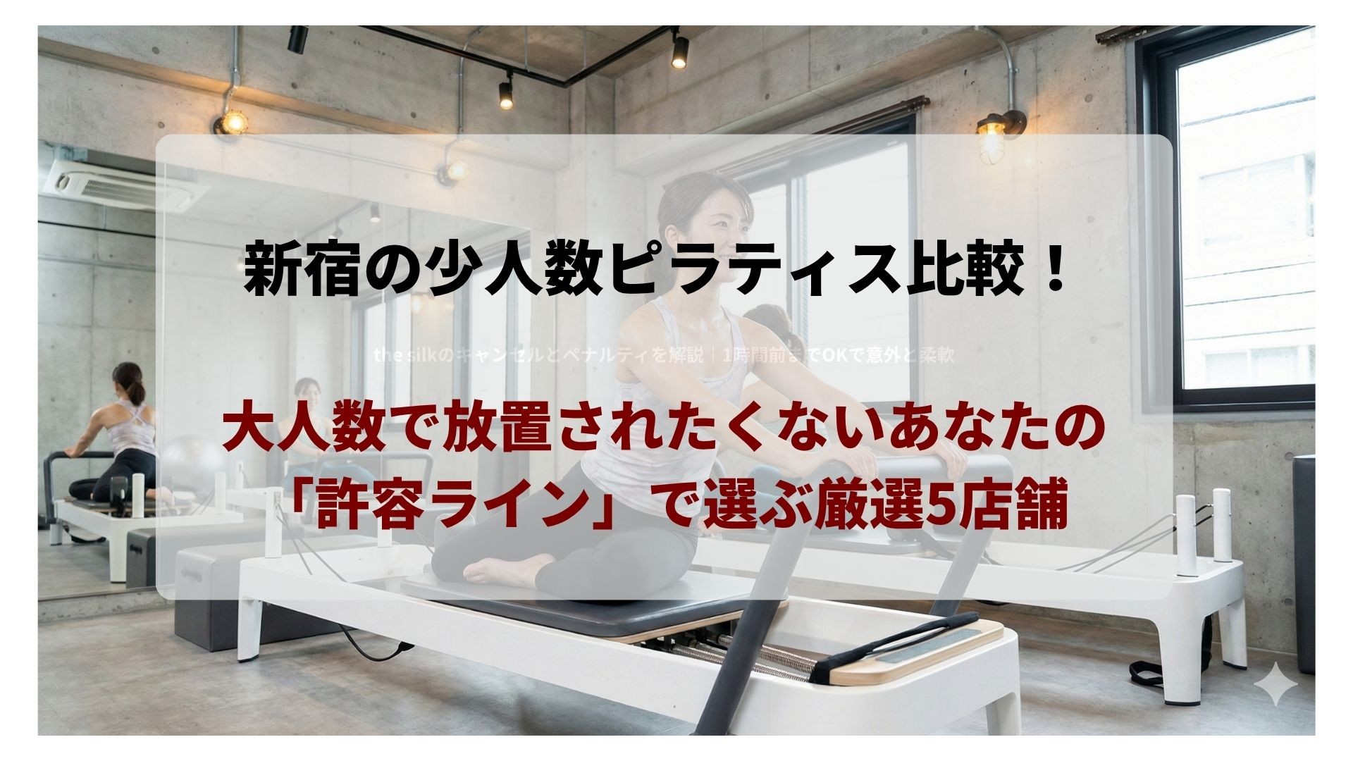 新宿エリアでピラティススタジオを探す際、このような「費用を少しでも抑えたい」という本音と「質の高い指導を受けたい」というジレンマを抱えて「少人数制」を検索する方は非常に多くいらっしゃいます。