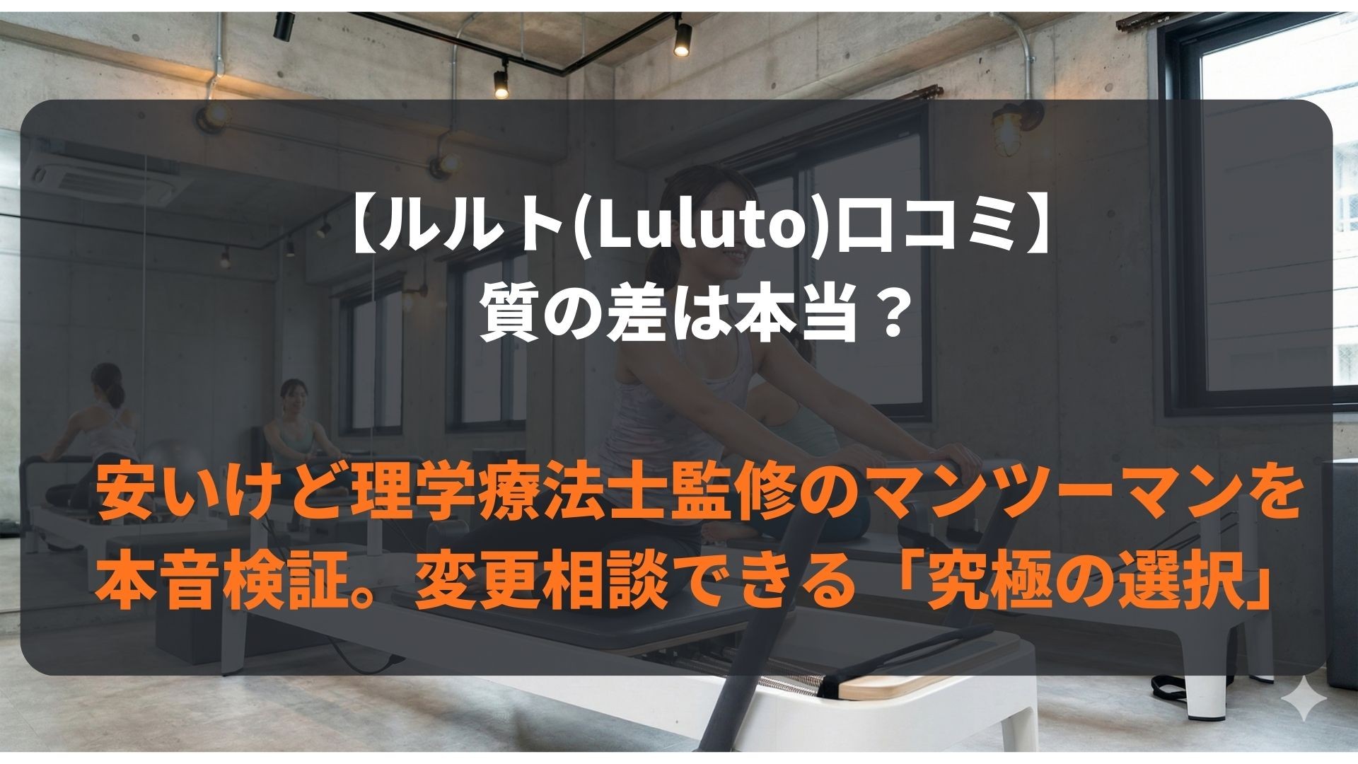 「パーソナルは高いと思っていたが、ルルトなら月額料金が整体に通うのと変わらない。それなら自分の身体を根本から変えられるこっちの方が断然コスパが良い。」