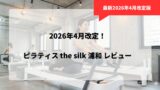 本記事に記載されている料金や制度、キャンペーン情報、口コミの内容は執筆時点のものであり、あくまで一般的な目安となります。ご自身の健康状態に不安がある場合や、持病・痛みがある場合は、無理をせず事前に医師などの専門家にご相談の上、体験申し込み時にスタジオへ詳細をお伝えください。また、最新の料金体系や正式な規約といった正確な情報は、必ずthe SILKの公式サイトをご確認いただき、最終的なご判断はご自身の責任で行っていただきますようお願いいたします。