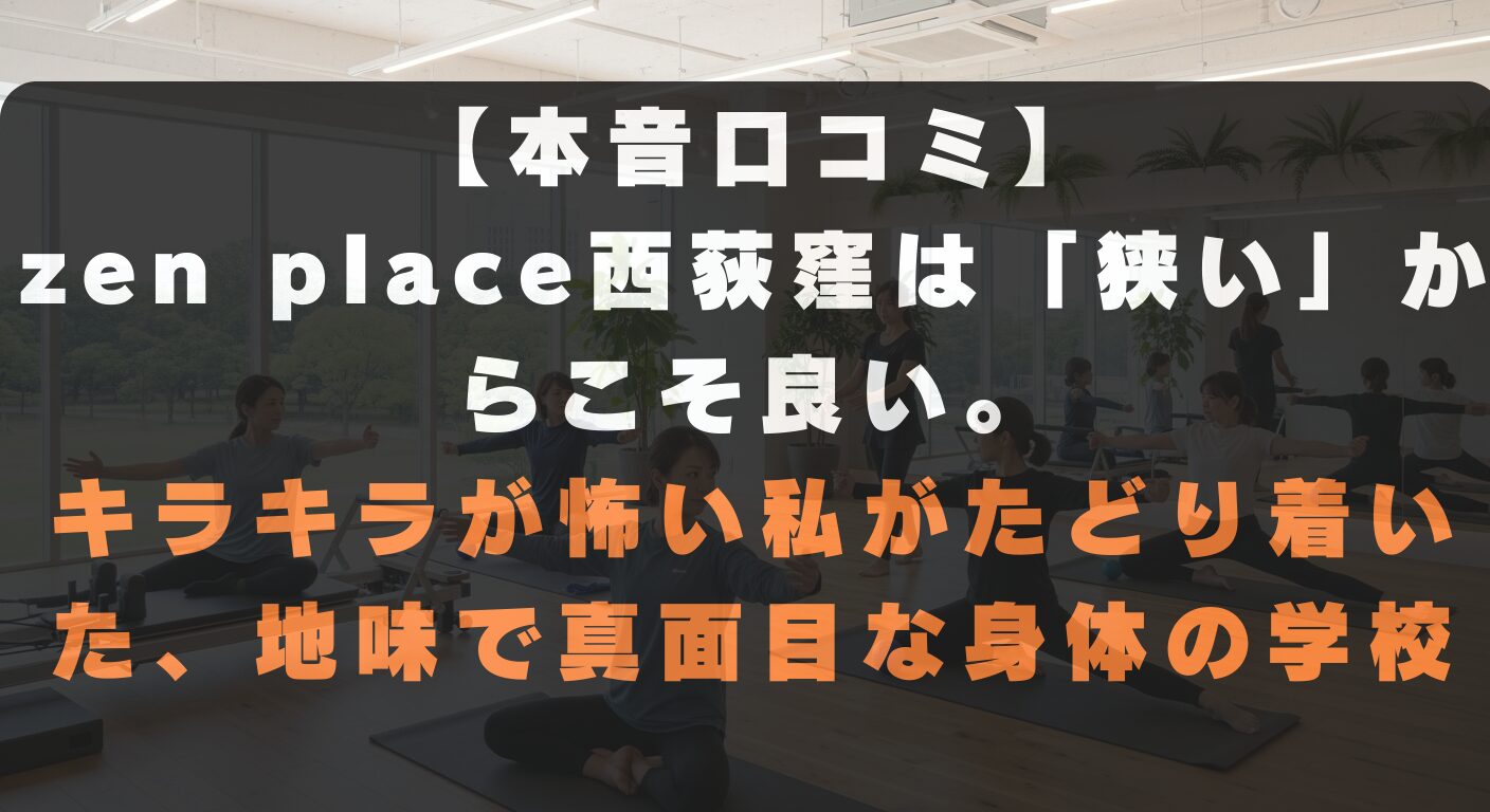 | zen place pilates 西荻窪 | ピラティス | 約1.3〜1.5万円 | △(工夫が必要) | 根本的に体質改善したい人 | 解剖学に基づく「再学習」。マット・マシン完備。 |